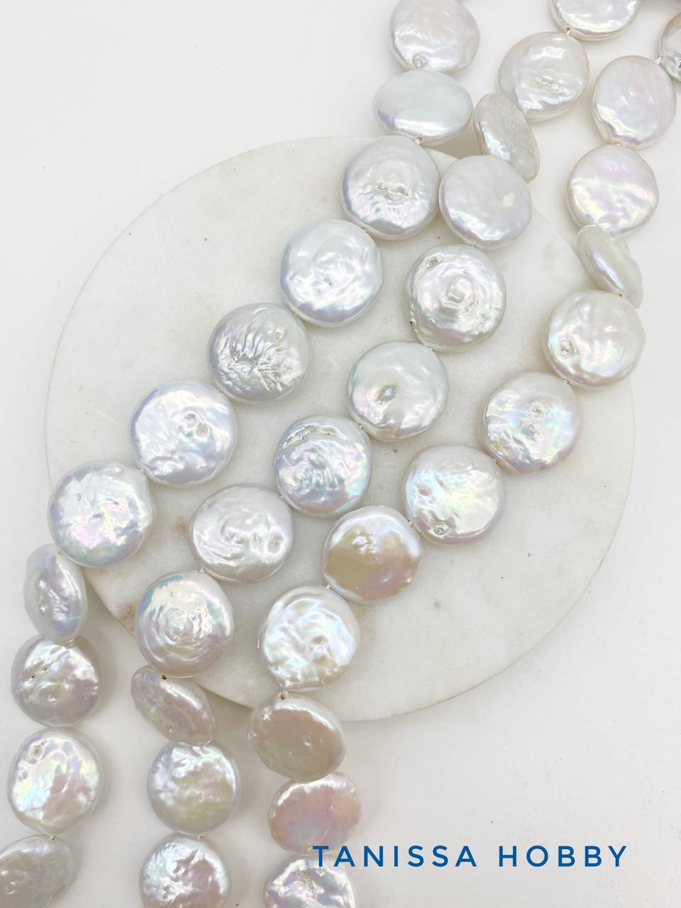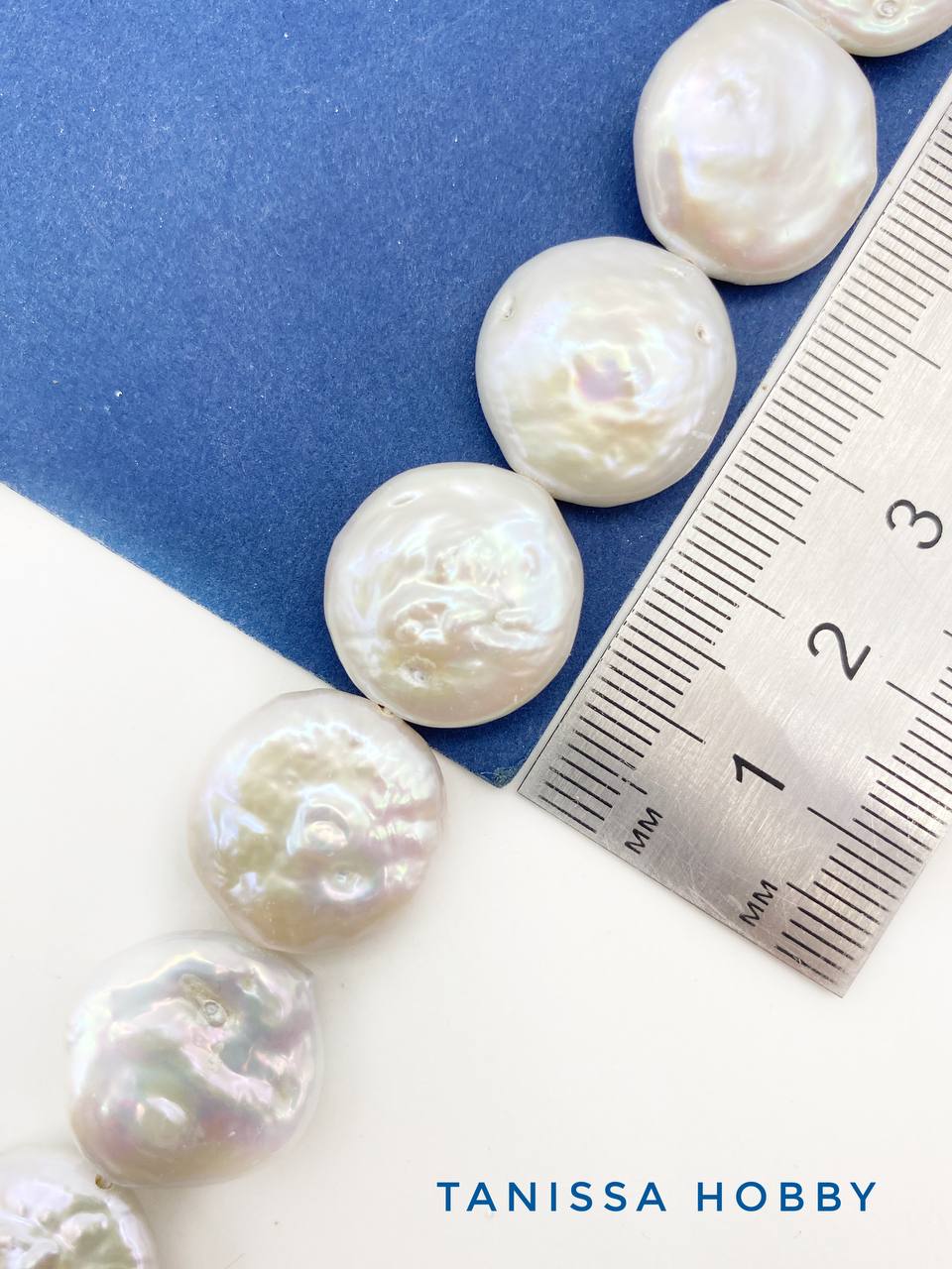 Жемчуг в форме плоских монеток. Размер 17-18мм, могут быть отклонения в калибровке на 1-2мм.